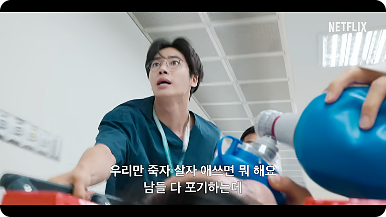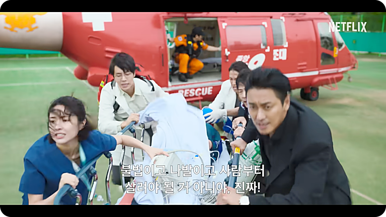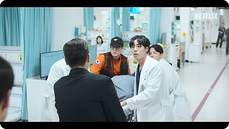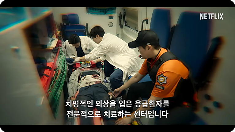 매회 찾아오는 응급 상황 속에서도 캐릭터들이 던지는 가벼운 농담이나 일상적 대화는 시청자들에게 소소한 웃음을 준다. 중증외상이라는 무거운 소재와 대비되는 코믹 요소가 적절히 배치되어, 분위기를 환기시킨다. - 2) 리얼리티 넘치는 의료 장면