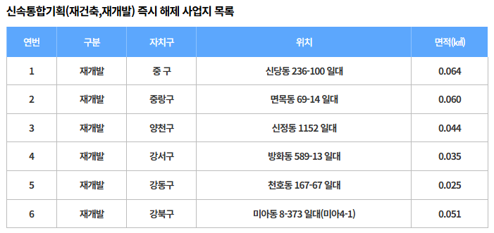 📢 즉, 재건축 기대감이 적은 지역 중심으로 해제!
